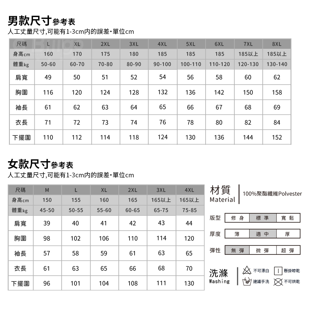 ●成份:面料:100%聚酯纖維Polyester(無彈性)